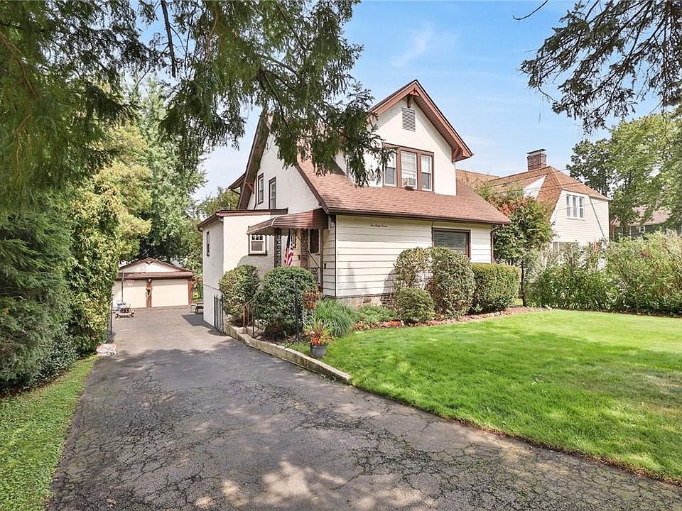 Stucco Colonial features wonderful architectural details to go with the easy access to all location. As you enter the home, you will notice the beautiful dentil moldings. The living room features a cozy fireplace and plenty of natural light. The dining room has a built-in china cabinet. Dine-in kitchen and office/bedroom with half bath. Upstairs, primary bedroom with en-suite bath, bedroom with built-in shelves, bedroom and hall bath. The walk on-out lower level has a finished laundry room with sink, playroom, powder room, utilities room and storage rooms. Gas Heating System, 200-amp circuit breakers, Lovely fenced in rear yard. Nicely landscaped with lawn sprinkler system. Convenient location near Webster Magnet Elementary School, Bee-Line bus to Metro-North train station, shops, and nature preserve with walking and jogging paths. Long driveway with 2-car detached garage Additional Information: ParkingFeatures:2 Car Detached,