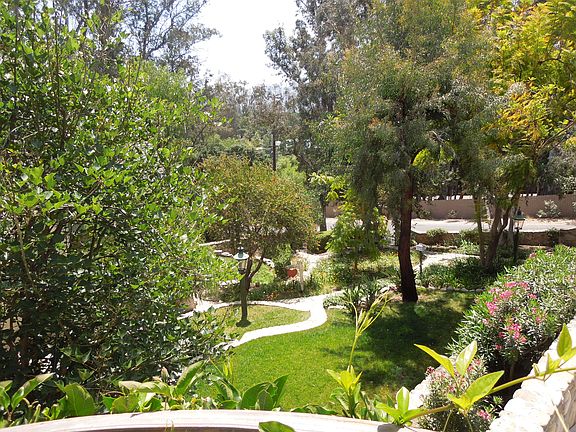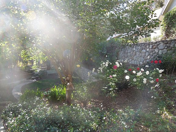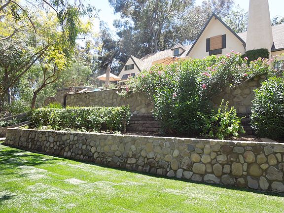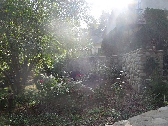 Exquisite country farmhouse nestled into the side of a hill with mountain views. The setting provides incredible views over the tree tops, very private with an orchard behind the property, a country road to one side and the mountain to the other. The house has a wonderful flow with a large great room with soaring beamed ceilings and trussed beams. The kitchen defines country with mellow wood custom cabinetry, incredible collection-worthy butler's display cabinets, a Viking range and new stainless appliances. The living areas have reclaimed knotty spruce floors beautifully finished in a glowing natural stain. The bathrooms are tastefully decorated in travertine marble, with top of the line fittings. There is a private guest house and a downstairs office/studio. The house sits in a fairy-tale setting, in terraced lush private gardens with meandering rock walls, 3 separate lawn areas, a folly and rose garden, lit by antique Victorian copper lanterns that once lined Pall Mall in London.