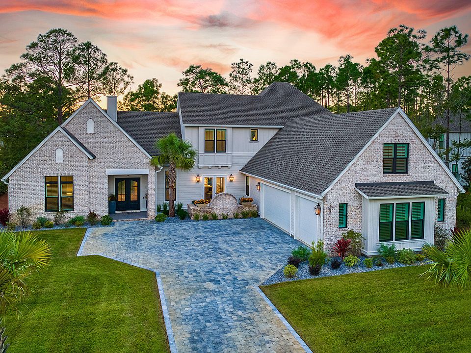 Nestled within the gated community of Seclusion Bay, 267 Hideaway Circle offers coastal luxury on an expansive nearly half-acre lot in Santa Rosa Beach, FL. This exquisite 5-bedroom, 3.5-bathroom home spans 3,866 square feet of heated and cooled space, with a total area of 5,172 square feet, including generous porch spaces ideal for outdoor living.Designed by Mark Tanney, this 2023-built residence embodies thoughtful craftsmanship and style. The open floor plan invites a relaxed flow throughout, with numerous windows and doors flooding the home with natural light. The great room seamlessly transitions to a spacious dining area and a gourmet kitchen, featuring quartz countertops and top-of-the-line appliances. The main level hosts a luxurious master suite with a serene master bathroom, expansive walk-in closet, and a dedicated office space. An additional bedroom, laundry room, pantry, and a large rear porch complete the first level. Upstairs, two more bedrooms, a bathroom, and a versatile flex space offer sufficient space for family or guests.
