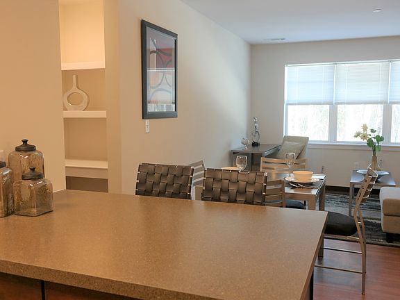 Choose from two stunning design palettes: sleek white cabinetry with grey flooring or rich cherry cabinetry with natural wood flooring. Buildings Two, Three and Four are equipped with elevators, common laundry facilities, and spacious mail areas for your convenience.