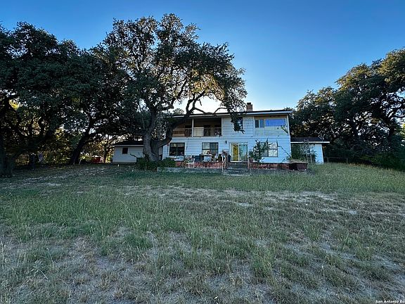 Vanderpool unrestricted 14 acres with unique large home overlooking Sabinal River and Mill Creek. This property is the point Sabinal River and Mill Creek come together. The property stretches from Old Mill Creek Rd to North Mill Creek Rd. Approximately 868 ft of Sabinal River, and about 566 ft of Mill Creek. Both sides of the rivers offers amazing waterfalls, bluffs, and incredible swimming holes to enjoy. The clear water beckons you to cool off in its depths. There are some areas perfect for picnicking in the shade of the towering Cypress Trees or just soaking in the sounds of bird song instead of traffic. Hunting is permitted. Whitetail Deer, Axis Deer, and even some wild Fallow Deer roam the area. The property has many mature Oak Trees and Cypress Trees. Built in 1979 the house has a Traditional design and spacious 3676 sq ft with more than 800 sq ft of patios and balcony space. Mature Oak trees shade the front yard, and back patio. Chandeliers spread a warm glow in the welcoming entrance hall as well as the formal dining room. The family room is a large space with a brick real wood burning fireplace. The ground floor bedroom has been used as a large office with a 1/2 bath and small closet. Breakfast nook is part of the open kitchen. Leading to the garage from the kitchen is a pantry area and laundry room. The laundry room has a walk-in shower and toilet. From the family room one can see the river area from the sliding glass door that leads out to a large two-tiered porch and fenced back yard. The three upstairs bedrooms can be accessed by staircase or elevator. The elevator is tucked into the corner of the formal dining room. Upstairs the two smaller bedrooms share a Jack and Jill bathroom. The primary bedroom has stunning views of the river area and distant mountains. A wood burning fireplace adds to the warmth of the room. Ensuite bathroom and walk in closet and an unfinished addition that was going to be an additional walk-in closet and storage. Back in the bedroom large windows and a sliding glass door bring in light and incredible views. There is a private balcony deep enough for table, chairs, and a couch to snuggle up on. The house is waiting for your own updates to fit your vision and comfort. There are two wells, full septic system. Close to Hwy 187 and FM 337 it's easy to get to, and still off the main roads. 2 miles to Lost Maples Store, a few more miles North to Lost Maples State Natural Area. Utopia is only about 11 miles to the South. So many possibilities for this one-of-a-kind river property! Buyer should independently verify all information provided.