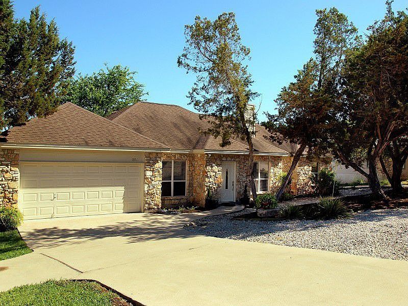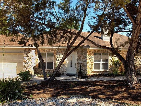 Adorable one story stone charmer in Lakeway packed with gorgeous features - just minutes to Lake Travis ISD schools, shopping, eateries and the lake. Low maintenance xeriscaping and an extra parking spot in addition to 2 car garage. Gleaming hand scraped wood floors throughout the house. A bright kitchen with fresh paint opens to formal dining and living areas. The living room features a fireplace with tile surround and custom wood mantle. The kitchen with breakfast area overlooks a covered patio and private fenced backyard. Spacious master suite hosts a large closet and built ins. Wood blinds and fresh paint make this property move-in ready.