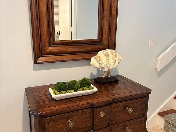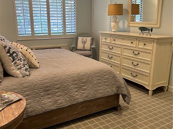 This 2 bedroom, 2.5 bath condo has wonderful views of the lagoon and a hole of Sea Palms Golf course. The bedrooms are on the first floor. Each bedroom has its own bathroom. The back bedroom has a kingsize bed and a sitting area with windows looking out over the lagoon and golf course. The living and dining and kitchen are on the second floor. This unit has wood floors upstairs and carpet in the bedrooms. It has stunning views. The furnishings are well appointed. Two recliners in the living area. Granite counter tops in the kitchen. Very light bright and airy! It would be a wonderful place to call home. It includes the following utilities with a $100 cap on the electric, and water and sewer are included.