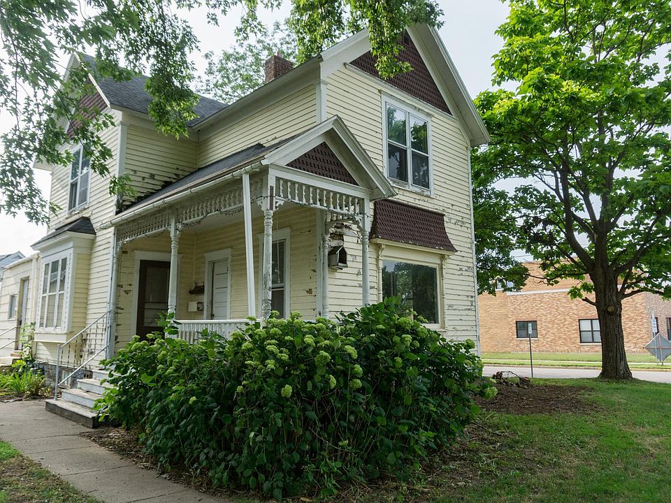 Don't let this character-rich Victorian-style home pass you by! While the exterior could use a little paint and TLC, the updated interior tells a different story. 3+ bedrooms and 2.5 baths across 1630 sq ft, this home features fresh paint, new vinyl flooring, a fully updated kitchen with new cabinets, countertops, and sink, plus two updated bathroom vanities and all new lighting throughout. Vintage charm remains with an original bay window with window seat, pocket door with glass insert, and beautifully preserved trim and doors. The primary suite includes a walk-in closet and private bath. You'll also loved the wide staircase leading to the upper level, which features two full baths. Additional perks: 1st floor laundry, a mudroom off the kitchen, a welcoming front sitting porch and a 2-car garage with front carport and rear workshop. Located on a corner lot near schools, parks, and downtown. THIS ONE IS NOT A DRIVE-BY!