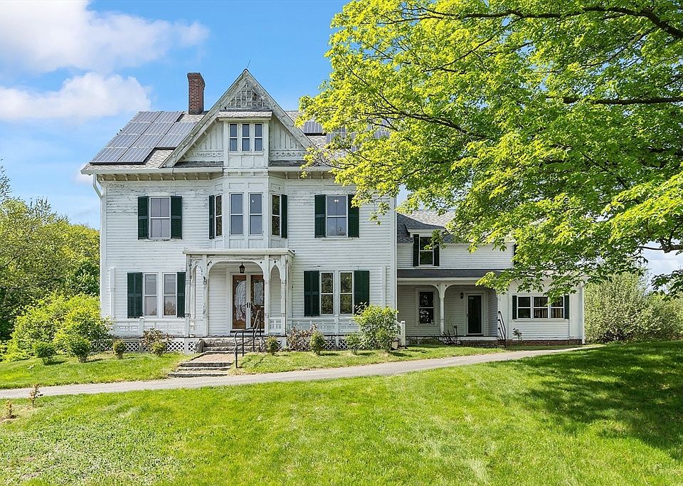Charming Antique Colonial situated on 1.5 acres offering quiet elegance and craftsmanship of yesteryear. This sixteen-room home awaits your imagination for a new century of gracious living. Many upgrades and enhancements have been made through the years by the current owners, including a 200-amp electrical service throughout the home, a new roof when solar panels were installed. Harwood flooring and stairwell leading to the third floor were refinished. Renovated kitchen with maple cabinets and maple flooring. Three full bathrooms, one on the first floor and two on the second floor, have all been updated. Plenty of storage with the third-floor walk-up offering four ample-sized rooms with closets in every room. The large two-story barn is a great space for a hobbyist or for an in-home office with a new rubber roof and new windows. Two car detached garage with new garage doors, openers and concrete floor. Apple trees, gazebo and spacious lawn complete this picturesque setting!