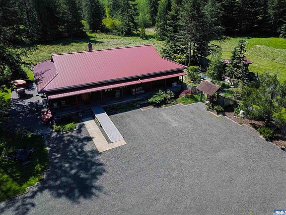 Wonderfully Private Custom Home on 12.5 Acres, accessible entrance and all single -level! This beautiful custom-built home features a large covered front porch,unique hardwood floors,a spacious Chef's Kitchen with a propane grill and plenty of room for entertaining. A large central fireplace connects the open living and dining areas, and the large windows and high vaulted ceilings make it feel open and modern. Other features include large Master Suite, beautifully landscaped patio, sauna, and large shop!