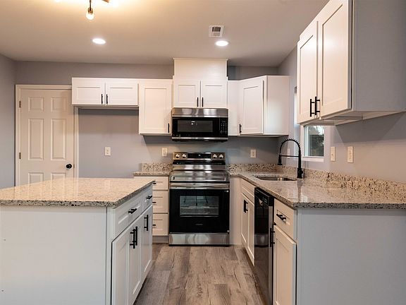 Amazing finishesSpacious islandStainless steel appliancesWhite shaker cabinetsOpen floor planAdditional seating and workspaceGranite countertops
