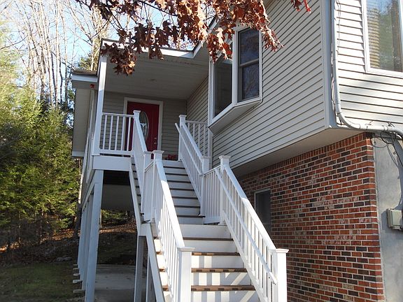 VERY PRIVATE, SITS AWAY FROM THE RD.TREX TYPE STAIRS AND PORCH TO MAIN LEVEL FRONT DOOR. LARGE DECK LOOKING INTO THE WOODS BEHIND THE HOUSE. SOME OTHER FEATURES MASTER BATH HAS FREE STANDING STEAM SHOWER AND JETTED TUB. THE MASTER BR HAS A SITTING ROOM AND WALK IN CLOSET WHOLE HOUSE FAN, CENTRAL AIR KEEPS THE HOUSE COOL IN THE SUMMER AND MULTI ZONE BASEBOARD HOT WATER AND WOOD BURNING FIRE PLACE KEEP IT COZY IN THE WINTER. THE GROUND LEVEL HAS ITS OWN FRONT DOOR OFF "IN-LAW SUITE", CONSISTS OF A LR, KITCHEN, BEDROOM, FULL BATH, AND UTILITY ROOM, AND ITS OWN HEATING ZONE. SOME OTHER FEATURES THIS HOME OFFERS IS THE BUILT-IN GENERATOR, SECURITY SYSTEM, OVERSIZED GARAGE WITH GARAGE DOOR OPENERS. CUSTOM CEILINGS AND LIGHTING, AND ALOT OF STORAGE.2 PRPN TNKS FOR THE GENORATOR