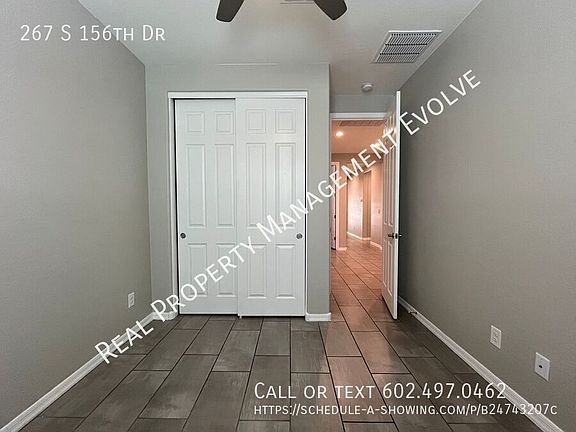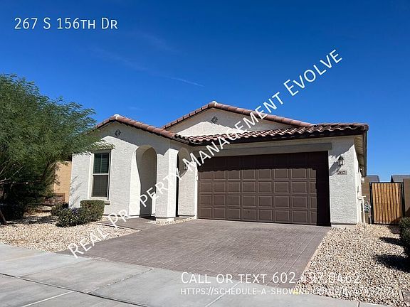 Enjoy this open and spacious 4-bed / 2-bath home located in Hudson Commons in Goodyear. Floorplan offers a seamless blend of style, comfort and functionality. It boasts an open, airy kitchen with large island, tile backsplash, stainless-steel appliances, and walk in pantry. Primary suite is split from the other bedrooms with a large private bath featuring dual sinks and a massive walk-in closet. Bedrooms are well-appointed with large closets. Garage is extra deep for additional storage room. Easy access to the I-10 and Loop-303. Don't miss out on this excellent opportunity to make this house your home!