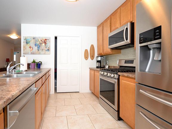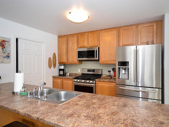 This is a must-see! Large, south-facing living area looks out over an established back yard and wooded easement. Like new construction. Upgraded SS appliances, new dishwasher, travertine tile, new Shaw laminate floors, seamless gutters, large asphalt driveway, walk-out patio, and landscaping. Convenient to schools, shopping, and parks. Call for more info!Seller is a licensee in the State of AK.