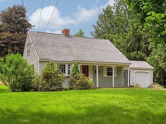 Just wait until you see this adorable 3 bedroom cape! Gorgeous yard in a great commuter location. Cute kitchen with eat-in breakfast area. Come on in through the sunny breezeway leading to the attached 1 car garage. Entertain in the lovely formal dining room. Large front to back living room with built in shelving & cabinets, fireplace & hardwood floors. Large Master Bedroom & two additional bedrooms upstairs all with hardwood floors and closets!! Full bathroom upstairs, half bathroom downstairs. Finished basement features huge family room with fireplace. Utility room with washer & dryer, also included! Enjoy the summer on your front porch, breezeway, or backyard patio! Great location on a country road, centrally located to Route 62 & nearby highways. Come check out your new home today!! Showings start on Sunday Open House Sunday September 13 1:00 -3:00 PM