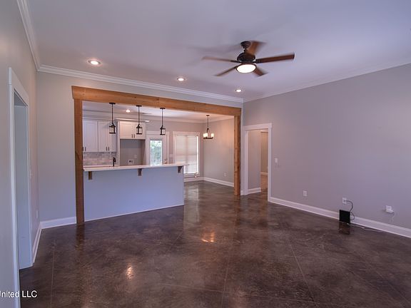 - Bar, Ceiling Fan(s), Crown Molding, Double Vanity, Kitchen Island, Natural Woodwork, Open Floorplan, Soaking Tub, Stone Counters