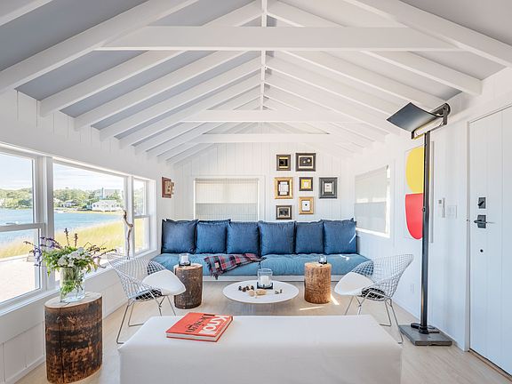 The minute you see this perfectly re-imagined waterfront cottage, you'll know the time has arrived to live by the water. Wake up to glorious sunrises among the idyllic surroundings of Davis Creek in Southampton and easily make your way to Peconic Bay. Sited on the iconic Towd Point where your own sandy beach and refreshing waters invite you for endless sunny summer days, enjoy the swans and egrets, or find your own fresh clams-this is the essential Hamptons retreat. Totally renovated in 2022, the pristine finishings inside shine as natural light washes through vaulted ceilings, exposed beams, and pearly shiplap siding. The chic and inviting open-concept design and an expansive wall of windows maximize the interior living space. The elegant eat-in kitchen boasts premium appliances and an expansive dining area, plus there is a lovely deck for dining al fresco. On one side of the home, two beautifully updated bedrooms share a luxe bath with a glass-walled shower. With so many brand-new features, an unmatched view and location - this stunning seaside cottage can become your perfect Hamptons waterfront getaway.