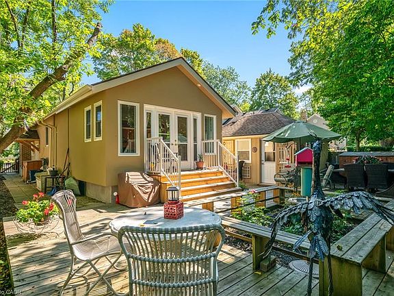 Location, location, location!! Just 1.5 blocks from Downtown!! The Bookseller’s Cottage is an historical NOTL icon, circa 1939. The location and value can’t be beat. Just a two-minute walk to downtown Queen Street takes you to cafes, restaurants, gelato bars and bakery shops, theatre, unique shops and everything NOTL has to offer. Despite the proximity to Downtown, this home is exceptionally quiet inside and no traffic can be heard inside. The main house, previously renovated, has also been substantially updated over the past 2 years with over $150k in improvements and repairs. [Please see photo #3 with the long list of features and upgrades]. Entering the home, you are greeted by a large open living room with a high-end, built-in elegant brick fireplace. This is one of two built-in, brick fireplaces in the house, each operated with remote controls. The living room also features two walls of near-floor-to-ceiling bookshelves. The primary bedroom is located discreetly off the living room through a sheer-curtained English-paned door, with a Jack-n-Jill ensuite. The bedroom is large and can be renovated back to 2 bedrooms if so desired. The kitchen has very substantial storage, newer appliances, a dining area open to a comfortable seating area also with its own brick, built-in fireplace, and welcomes you to the new four-season sunroom. The large double-door assembly and new windows provide an abundance of natural light with walk-out to rear garden. The sunroom also has a new 2-piece powder room behind a frosted pocket door. The back garden has a number of seating areas, flower gardens and locking, wood storage bins. The Garden Suite (second building) is the “pièce de résistance” – a separate new four-season dwelling complete with full shower, on- demand hot water, combined ductless heat-A/C unit, and living/sleeping area. A rare find and perfect for family, friends and guests. The home is priced to sell!!! Book your appointment today to see this one-of-a-kind gem.