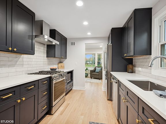 Welcome to Your Affordable Dream Home! Step into this beautifully renovated 4-bedroom, 2-bathroom residence, where quality craftsmanship and elegant finishes are evident throughout. The stunning galley kitchen boasts brand-new stainless steel appliances, quartz countertops, and sleek, deep navy color cabinets with soft close. The spacious family room and dining area are highlighted by charming wood beam ceilings and a beautiful bay window that floods the space with natural light. This home features new windows, wood interior doors, and trim, along with new hardwood floors on the first level and plush new carpet on the second. Enjoy the peace of mind that comes with all-new copper plumbing and updated electrical systems. The bathrooms are a true retreat, showcasing the latest in floor and wall tiles. Storage is plentiful with two linen closets and large coat closets, ensuring you have ample space for organization. The basement, with its high ceilings, awaits your creative vision and finishing touches, while the crawl space under the family room provides additional storage. With two bedrooms on the first level and two on the second, this home offers versatile living arrangements to suit your needs. 2.5 car garage with extra wide and deep driveway, partially fenced in yard. Located in a prime area, you're just minutes from shopping, restaurants, and the Oakbrook Mall. Commuters will appreciate the proximity to the Elmhurst and Berkeley Metra Train stations. Beautiful Eldridge Park and bike paths are just down the street and local schools right around the corner. Don't miss this opportunity to be blessed with a quality life in a quality Elmhurst home!