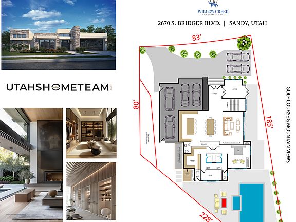 A RARE OPPORTUNITY to own a home site on one of Utah's most prestigious country clubs. Situated on hole #8 of Willow Creek Country Club, this .32 acre lot is situated perfectly to take in the beautiful lake and water feature of one of the club's signature holes and the unobstructed vista of the majestic Wasatch Front Mountains. The gentle grade driveway provides an elevated view for the home to maximize the views. A sample home plan has been provided in the Photos to see how a 4,000 - 6,000 square foot home could be positioned to take advantage of the home site. Already cleared and rock retained by the owner, this site sits ready for construction with minimal site preparation work and expense. Another option is available if you are seeking a LARGER lot with a dream yard and monster garage by purchasing the adjacent home at 8585 Mount Majestic Rd. (MLS#2127295 ). A DISCOUNT is provided when purchased together. An illustration of what that Dream Home with Dream Yard could look like is also provided and can be modified to your specification and needs.