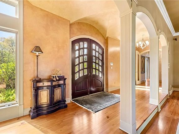 An Exquisite French Country Tudor nestled in an enchanting forest awaits you, masterly built and designed by Fred Becker and Architect Gunther Kaier and appointed with the finest details creating beautifully elegant rustic charm throughout. The foyer welcomes you with warm longleaf heart of pine wood floors that carry you throughout almost the entire main level. Step down to the living and dining rooms adorned with sparkling crystal chandeliers, built in cabinets and buffet and gas log fireplace. You will love entertaining in the renovated epicurean kitchen with high end appliances, custom wood cabinetry enhanced with stunning granite counters and open to the family room with trussed cathedral ceilings and fireplace. The lower level boasts a gameroom with projection screen tv, wet bar, exercise room steam shower and more. Outside there are many patios, hot tub, koi pond and waterfall to be entwined with nature. Too many details to list, truly the most unique home you will see in USC!