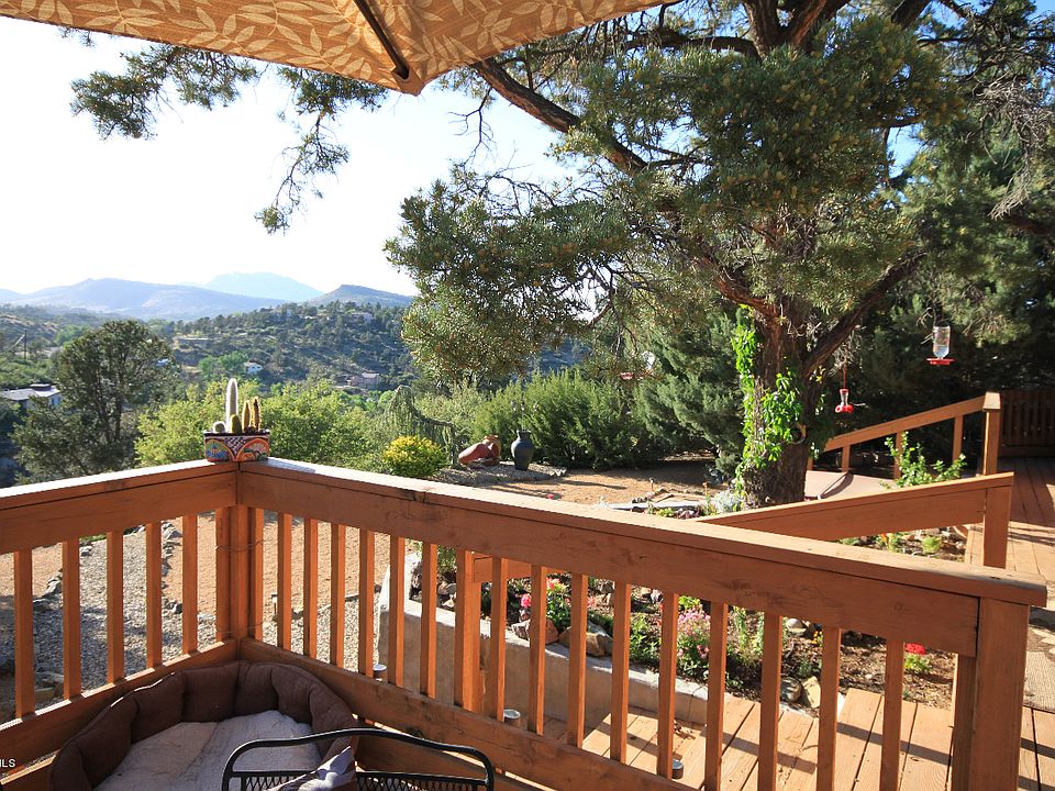 Lots of light and love have been brought into this gem of a home! 3 Bdrm or 2 Bdrm + Den, Formal Dining or Office with a Queen Murphy Bed already installed. Open concept kitchen with granite counter tops, large pantry. Can be an "eat-in" kitchen. Stone fireplace - wood burning or gas. Attached Double Car Garage with entryway leading into home. Fully fenced backyard with fantastic SUNSET VIEWS of GRANITE MOUNTAIN on a large new deck. New Roof 2/13 with warranty. Over 3/4 Acre VIEWS!!