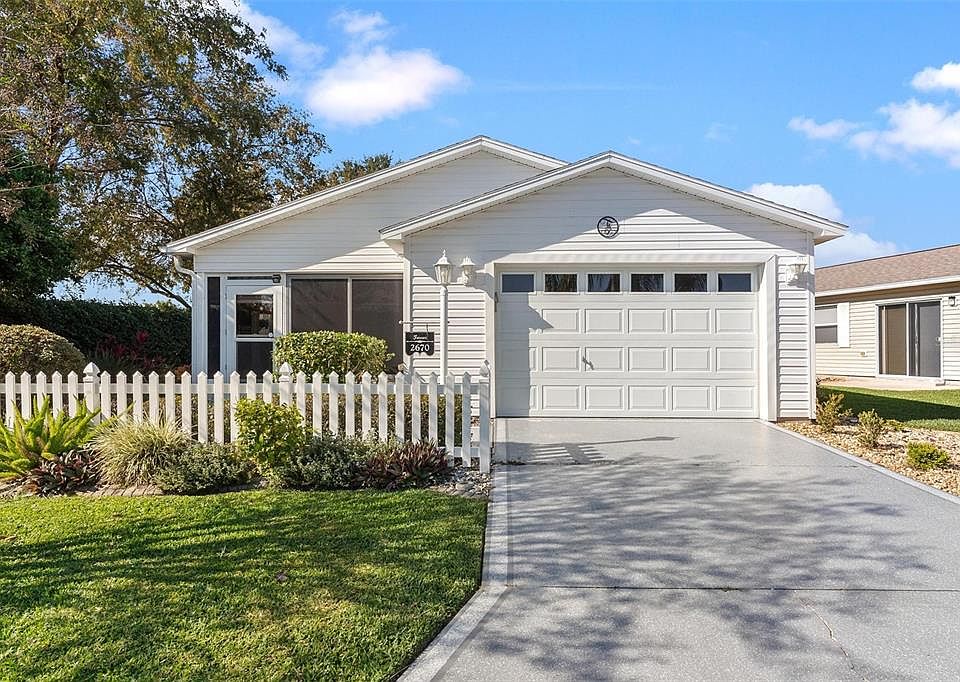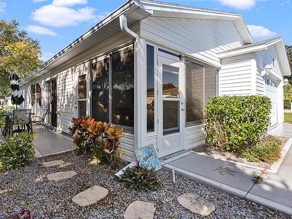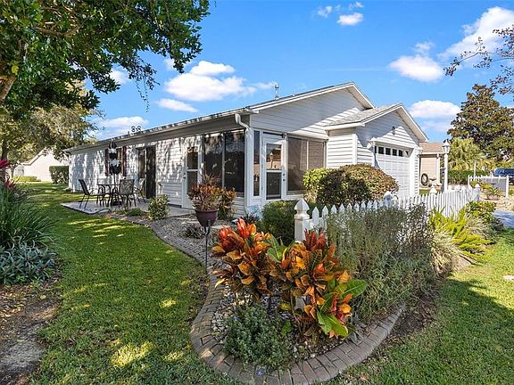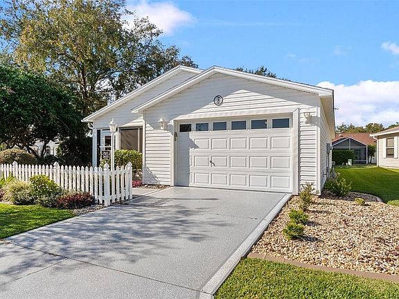 This charming 2-bedroom, 2-bath home is completely turnkey and even comes with its own golf cart, making it easy to enjoy all The Villages lifestyle has to offer. Step inside to an inviting layout featuring wood floors in the main living areas and laminate in both bedrooms—no carpet anywhere. The home is bright and welcoming with well-placed solar tubes, while plantation shutters add a clean, classic finish throughout. The spacious master suite includes a beautifully custom-designed walk-in closet, providing excellent organization and storage. Recent updates include a roof replaced in 2020 and a brand-new water heater installed in 2024, giving you peace of mind for years to come. Located just moments from the Belvedere neighborhood pool, this home offers comfort, convenience, and a fantastic location—and best of all, there is NO BOND. Move-in ready and meticulously maintained, this home is the perfect opportunity to enjoy easy living in one of the most desirable Villages areas.