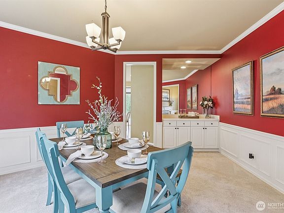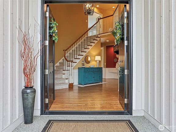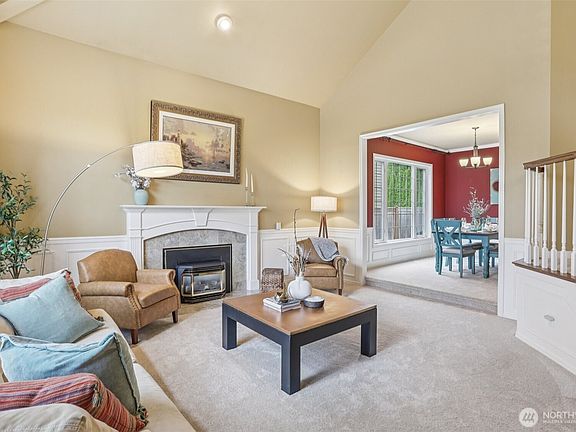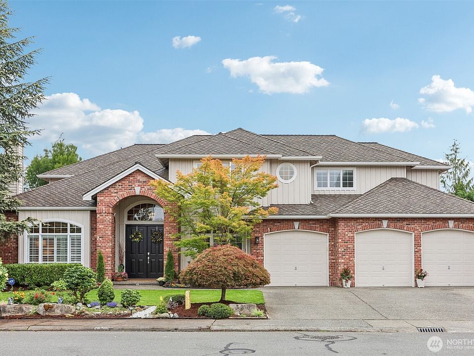 Stunning Trossachs home filled with natural light, soaring ceilings & elegant finishes. Beautiful hardwoods, custom paint & white millwork. Foyer opens to a grand formal living room w/wainscoting & fireplace. Main floor office + huge bonus up. Elegant primary suite w/Cascade views, spa tub & walk-in closet. Newer composite roof (2016) & heat pump (2021). Recent upgrades: Timbertech deck, hot tub, pergolas, concrete patio, double smart ovens, water heater, landscaping, carpet. Entertain on the expansive deck and or unwind in the hot tub surrounded by a landscaped private backyard. Central A/C. A must see!
