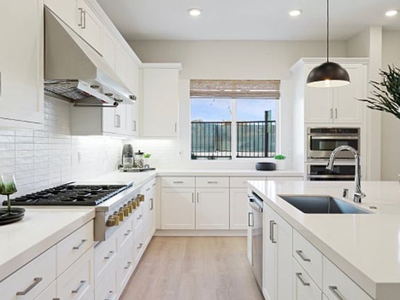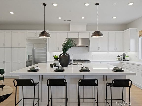 A spacious open floorplan is shared between the Great Room, kitchen and dining room on the first level of this three-story home. A secondary bedroom located at the back of the home is great for overnight guests or a home office. Four more bedrooms are located upstairs, including the luxe owner’s suite which is comprised of a restful bedroom, private bathroom and walk-in closet. The top floor is occupied by a versatile bonus room. Beautifully decorated model home that offers custom designer upgrades that no other home offers! Peak is a collection of new single-family homes at FivePoint Valencia in the Santa Clarita Valley, CA. Peak offers three-story floorplans featuring open-concept living areas, bonus spaces and decks. Residents will enjoy exclusive masterplan amenities including neighborhood rec centers, pools, playgrounds, sports parks and so much more. Set in the Santa Clarita Valley, this community enjoys a coveted location close to retail shopping centers, major freeways and Six Flags Magic Mountain just minutes away.