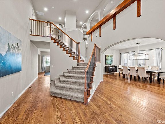 Welcome to this dream home in desirable Highlands Ranch! This semi-custom home was built with love and attention to detail, making it truly special. Have we found the KITCHEN of your dreams? You know the one where you say you'd cook every day if you had a range "like that" - featuring three-tone custom cabinetry, the Ferrari of gas ranges, open shelving, and an expansive island. The seamless flow leads you into the oversized family room, where a double-sided staircase adds a touch of elegance and convenience. Step OUTSIDE and discover the backyard oasis. With low maintenance turf and the included outdoor furniture, gas fire pit, and outdoor heater, you'll have everything you need for gatherings. Spice up game time with friends on your Corn Hole/Bocce Ball Court! Enjoy sunny days and cookouts on the upper deck, right off the kitchen, while the lower deck, equipped with a dry-below system, provides shade during those scorching or rainy days. Outdoor living is truly at its finest here. And when you want to REALLY get outdoors, access to the trails is at the end of the cul-de-sac. Retreating to the PRIMARY SUITE is an experience like no other. Secluded in its own wing of the home, it offers breathtaking views of the mountains and city through its expansive windows. The oversized room provides ample space to relax, while the luxurious newly-remodeled bath exudes timeless elegance. Maximize your entertainment options in the BASEMENT, creating the ultimate movie and entertaining space. Your guests will feel like they're in a luxurious hotel with the space and amenities available (careful, they may not want to leave!). Whether you're entertaining friends and family in the abundance of space this home offers, or spreading out for privacy among the 5 bedrooms and the office, don't miss the opportunity to call this fantastic Highlands Ranch home your own * TOUR: bit.ly/3XaB5vW