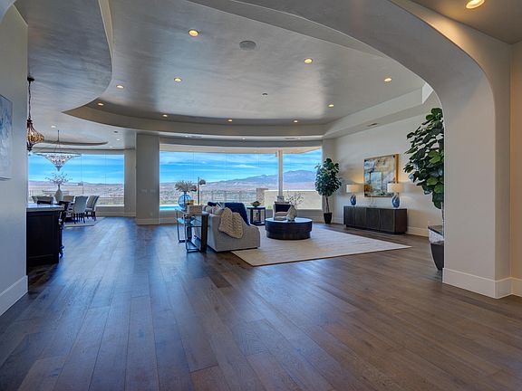 New Luxury Home including Furnishings! This beautiful home is ready for your client to move in! Over 6,000 SF of Luxurious Living All On One Level! Panoramic views of Pine Valley Mountain & City Lights at night. Expansive full butt glass windows, beautiful ceiling treatments, theater, office, caterers kitchen, extra storage, workshop, game room, Beach Entry Salt Water Pool, Spa, Fire &