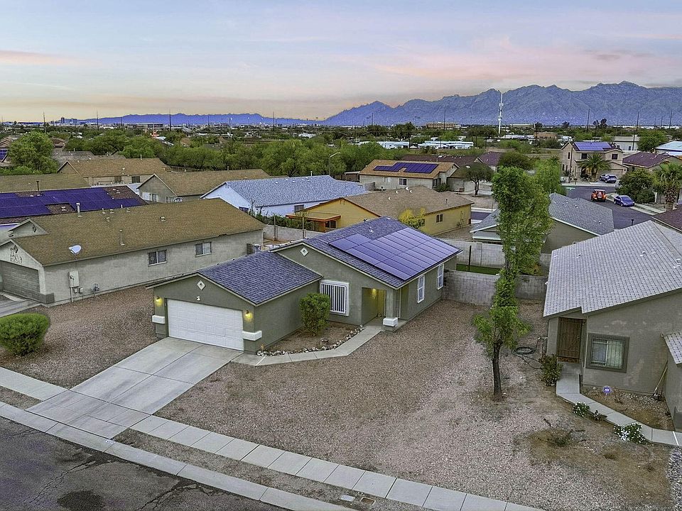Seller will accept and or counter offers between $274,777 and $284,777. Light and bright 3-bedroom, 2-bath home with a desirable north/south orientation, all tile flooring (no carpet), and newer appliances. The primary bedroom includes two closets and a window overlooking the low-maintenance backyard, which features turf, decorative rock, and a clean concrete patio. The garage offers enhanced electrical capability with a 240V outlet, a 240V disconnect, and standard 120V power. The property includes a solar lease with a fixed $175/month payment, providing an eco-friendly energy option.Located minutes from I-10, the airport, Davis-Monthan AFB, public transportation, shopping, and restaurants. Neighborhood has great walkability with sidewalks.Seller offering closing cost assistance.