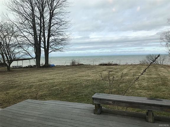 Lovely lake house featuring a large, open great room with gas fireplace adorned in a lake rock finish. Vaulted ceilings, large windows & French doors really bring the water views indoors as well as taking you right outdoors onto your deck to enjoy the views of Lake Ontario and the Toronto skyline. This 2 bedroom, 1 bath ranch has a first floor laundry/bonus room, an eat in kitchen with brand new fridge and stove 3/2020, a partial basement and a 2.5 car, detached garage. Listing includes an additional 52x374' lot right next door. Taxes for lot are School-$397 & County $205. Move right in to your lakeside oasis!