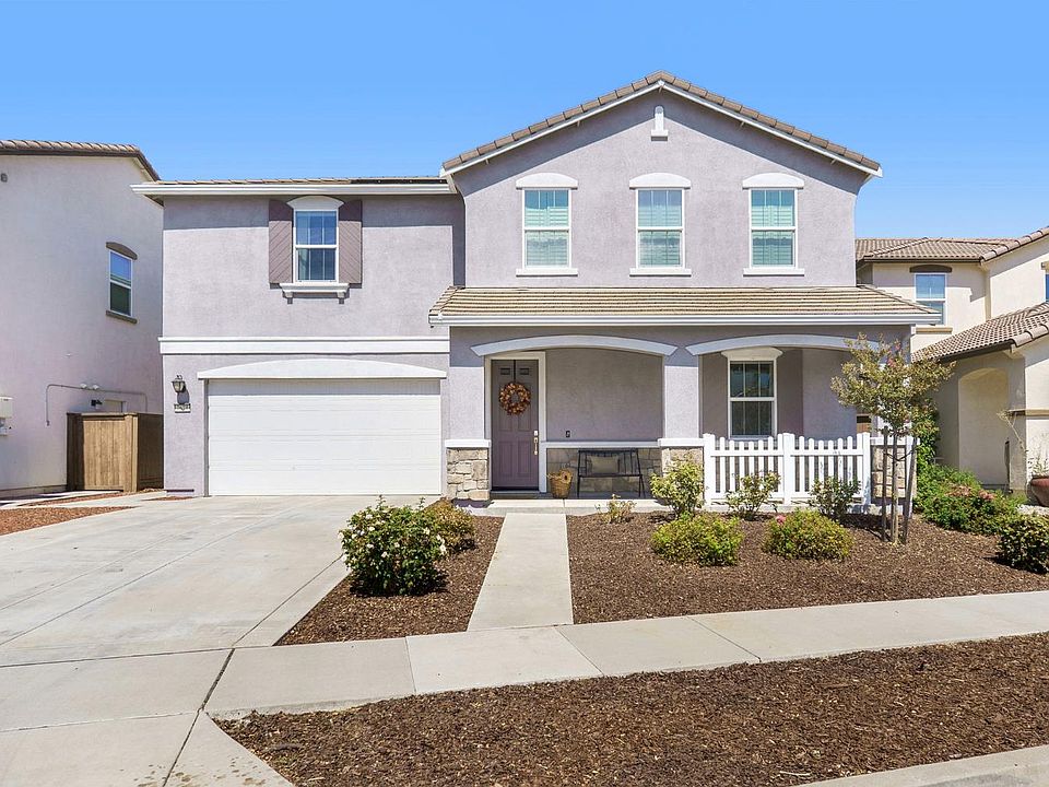 Welcome to 2761 Post Place, nestled in The Orchard at Springlake. This spacious 5 bedroom, 3 bathroom home offers 2,874 square feet of thoughtfully designed living space in a desirable cul-de-sac location adjacent to the greenbelt with walking paths that parallel almond orchards and open fields. The lower level offers the modern convenience of a great room concept living, seamlessly blending the living, dining, and kitchen areas - perfect for entertaining. A full bedroom and bath downstairs provide flexible space for guests or multi-generational living. The chef's kitchen is a true highlight, featuring an oversized working island, double ovens, a gas cooktop, and the luxury of a massive walk-in pantry. Upstairs, a light-filled loft offers endless possibilities, while three secondary bedrooms provide plenty of space for family and friends. The expansive primary suite is a private retreat, complete with a spa-like bathroom offering a soaking tub, separate shower stall, double sinks, and an impressive walk-in closet. Close to freeway access, shopping, and schools, this home blends elegance, comfort, and convenience - truly offering it all.