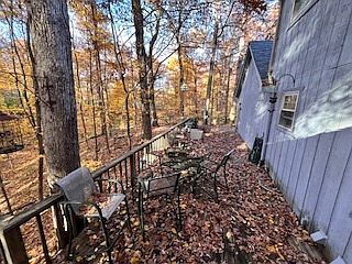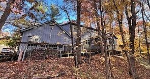 Interior photos next week after removal of interior stuff! Awesome location and wooded. Large ravine off rear of home with huge deck off rear. Lots of privacy. This 2 story with vaulted ceilings has main level master bedroom suite(including full bath). Huge LR/Family Room with fireplace. Kitchen dinette and formal dining. Upstairs 2 spacious bedrooms. Full unfinished basement is over 1500 ASQ of additional space. 3 season room off Dining Room. Located rear of property with unbelievable view of wooded ravine with access to large deck! Feel like you are in the North Woods of Wisconsin! 3 yes a 3 car attached garage with ample electric if you work on cars or wood working! Mechanics dream! Brand new roof and updated Furnace, Air and Hot Water Heater. Guts of home are great. Owner is currently cleaning out lots of stuff so please pardon the slight mess. Home does need new carpeting and some decor updates and is priced to reflect this. Circle asphalt drive and plenty of parking. Home is 2000 plus asq of living space plus 1500 Full basement. Fast closing and immediate possession for new buyer. When viewing once again be aware seller is emptying home and some furniture would stay if wanted. Will go FHA or VA.