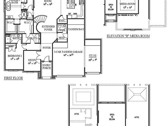 Dining areaFamily roomFour car garageCovered patioMedia roomExpansive island kitchenDouble walk-in closets