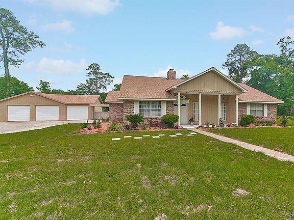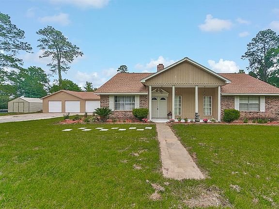 Situated on a spacious 2.3-acre lot in the quiet community of Spring Creek Forest, this beautiful home boasts tile flooring, crown and base molding, a fireplace with a brick surround in the living room, and a formal dining room. Dream up culinary masterpieces in the amazing kitchen, complete with granite countertops, a mosaic backsplash, glass fronted cabinets, a gas range, and breakfast bar. The private master suite features a walk-in closet, dual vanities, and a whirlpool tub with shower. The spacious sunroom is the perfect spot for entertaining guests, with its oversized wet bar, built-in shelves, and glass fronted cabinets. The expansive backyard comes with a patio, storage shed, and room for a pool. Located 7 miles east of Highway 249, Vintage Park and The Woodlands Mall are just a short drive away! Schools are zoned to the prestigious Magnolia Independent School District. This is the home of your dreams - call today