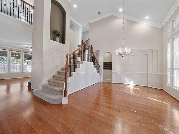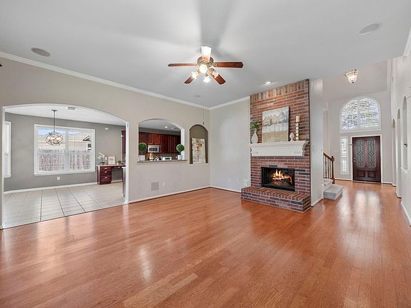Stunning 2-story home in the heart of Cypress with 4 bedrooms, 3.5 baths, and a 3-car detached garage connected by a covered walkway. The bright, open kitchen with generous counter space and breakfast nook flows into living areas filled with natural light. Enjoy a dedicated home office with wood floors and a cozy den/media room. The spacious primary suite features dual vanities, soaking tub, and separate walk-in shower. All bedrooms are carpeted with ceiling fans throughout. Enhanced security includes a gated driveway, security-rated storm door with impact-resistant glass, and camera/system staying with the home. Ready for a portable generator with natural gas line to garden, generator shed, and electrical hookups; garage offers built-in shelving, workbench, and pegboard. The area is dotted with several parks and community centers, facilitating outdoor activities and providing spaces for social interaction.
