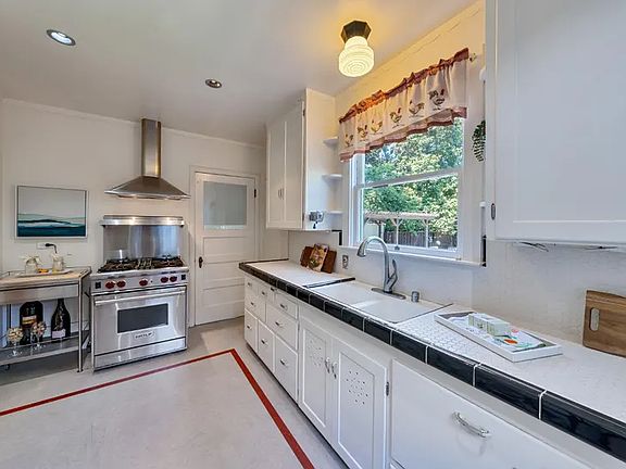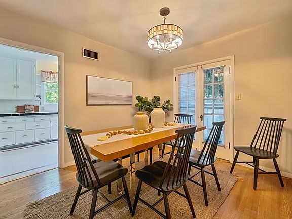 Sparkling blue poolTree-lined streetDining roomLots of natural lightRemodeled bathroomBeautiful hardwood floorsOriginal built-in doorbell