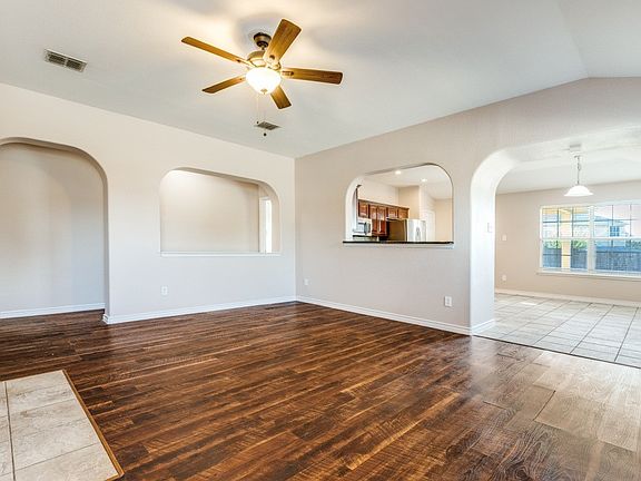 3 bed 2 bath home located on corner lot features open and floor plan, gas fireplace, granite countertops in kitchen with stainless steel appliances, fenced backyard and garage. Minutes from community parks, Lake Lewisville and shopping and dining on Hwy 380.