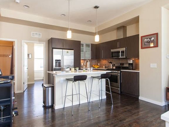 Beautiful three story Row Home in Jefferson Park, and steps to Broncos stadium. 2 bed / 2 bath with an office that can be used as a 3rd bedroom. Large rooftop patio with a view of downtown and Jeff Park. All finishings and furniture are modern and new. There is a 60 inch TV mounted in the living room, and a 45 inch mounted in the master bedroom. Hardwood floors throughout, and an attached two car garage. The neighborhood is surrounded by breweries, restaurants, and tucked away enough from Downtown to have quiet evenings.