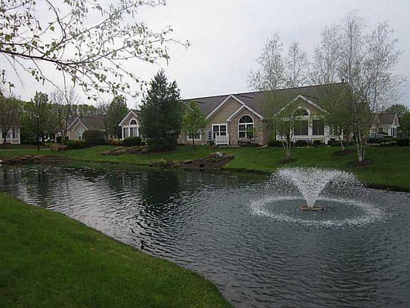 Impressive 2 (possible 3) bedroom, 2 full bath condo in lovely Prestwick Village. Over 1700 sq. ft. of living area featuring interesting architectural design. Vaulted ceilings and open floor plan make this an elegant and charming home perfect for entertaining as well as everyday living. Abundant windows and large sunroom bring in lots of natural light and afford a view of the tranquil pond and fountain just outside the front door. French doors lead to a study which could be a 3rd bedroom. Master bedroom has walk-in closet and double sink bathroom with step-in shower. Condo fee includes lawn care, snow removal, water/sewer, trash, hazard insurance, use of clubhouse with party room and workout area, and inviting inground pool. (No permanent residents under age of 18. New owner pays a one time $470 fee into reserve fund)