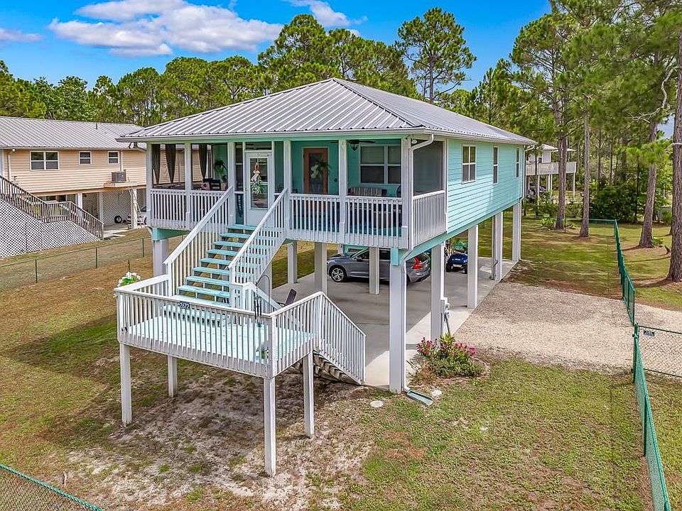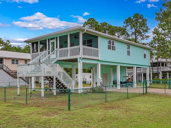 Meticulously maintained home with a bay view. A lovely screened-in porch that is just right for morning coffee or evening chill time watching breathtaking sunsets. House is on concrete pilings. Metal roof. Downstairs area provides another place for a cookout or parking for cars or your golf cart or your boat. There is a workshop and plenty of storage. Fenced-in yard. Great opportunity for a full-time residence, weekend retreat or investment property. Home being sold As-Is with right to inspect. All measurements to be verified by buyer.