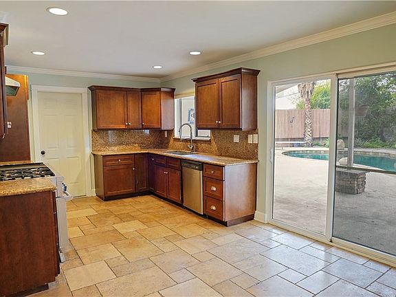 Awesome single story pool home with RV parking waiting for you. Updated kitchen, crown molding, fresh paint, gorgeous tile flooring and updated bathrooms. The lot is over 11,000 square feet and offers a 9 foot deep pool with ample space for entertaining. The yard is spacious in addition to the covered patio off the kitchen with fans all ready to go. End of the culdesac offers a lovely location near Central Park, shopping and restaurants. There are four bedrooms and two bathrooms with a terrific living room and fireplace. NO HOA, NO Mello Roos.