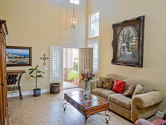 This charming house has everything you want for today's busy lifestyle! Open floorplan that flows from the living room to dining room to kitchen to family room, and opens to the low-maintenance backyard. Living room has extra high ceilings and windows for height & light. Kitchen has breakfast bar at the island. Cozy fireplace and niche for TV & related equip in the family room. Laundry is indoors. Cul-de-sac street too! Short walk to HOA pool & playground, right at the end of this street.