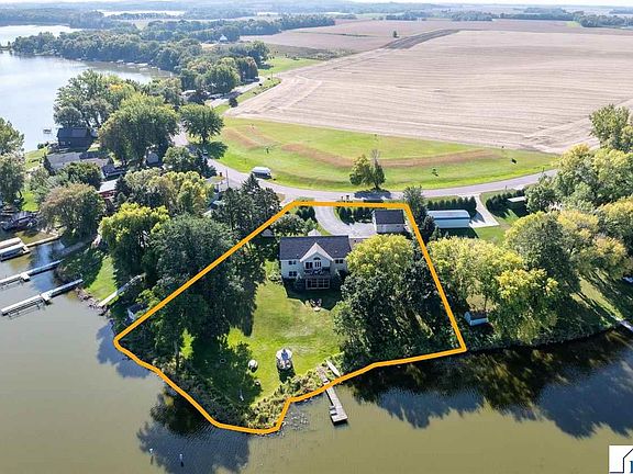 Enjoy lake living and pan fishing at its finest with this 4-bedroom, 3-bath lake home with 300 feet of shoreline located on Middle Jefferson Lake! This home features an open floor plan with stunning lake views, Cambria countertops, refinished hardwood floors (2025), and two fireplaces—one gas with a European cast-iron face and custom cabinetry, and one brick surround (2013). Outdoor living shines with a TimberTech deck, lower level walk out screen porch (2020), cedar shake gazebo, and riprapped shoreline (2016). To the left of the attached garage is a rain garden with numerous native plants. Owners also have several other areas along the garage and shoreline filled with native plants to attract butterflies to add to the appeal of the natural coastline. Major updates include a new roof (2017), updated flooring (2024), and a well-maintained driveway seal-coated every three years. The property features both a heated, insulated 2-stall attached garage with a hoist and a heated 2-stall detached garage with a shop, dust collector, and fenced kennel with dog door to the heated space. Extras include maintenance-free railings, playhouse, wired for a generator to be hooked up if there is a loss of power, and Hawk security system. Dock is negotiable.