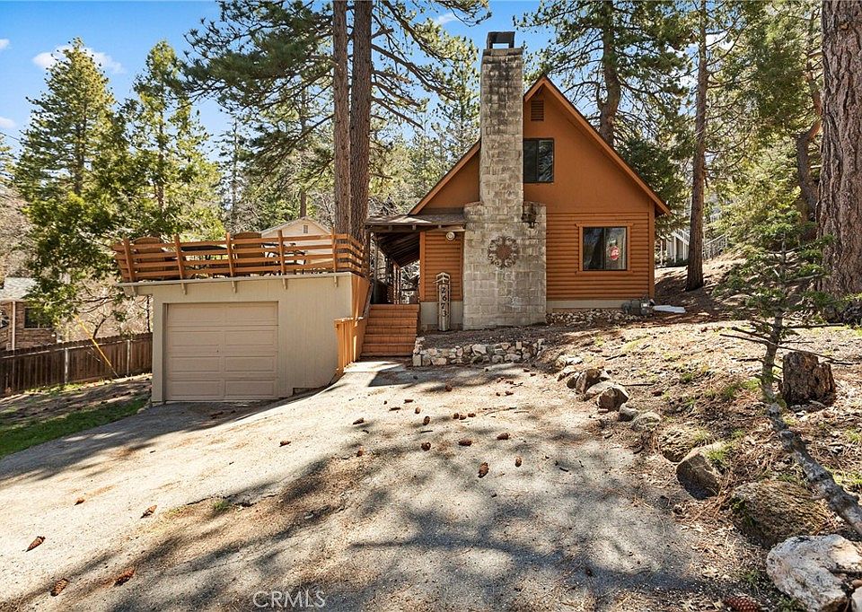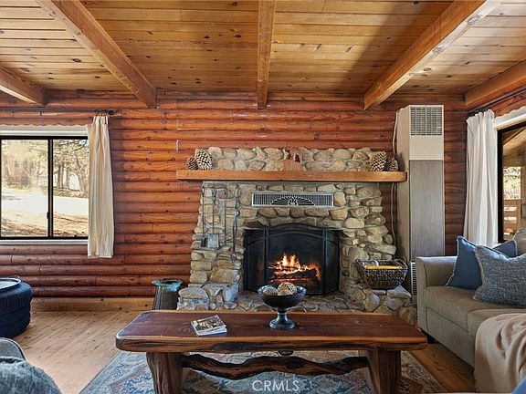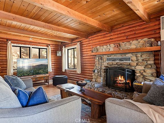 Nestled in the quaint and peaceful town of Running Springs in the San Bernardino Mountains this charming 3 bedroom 1 1/2 bath log cabin is perfect for a peaceful escape or year-round living. Upon entering home, you immediately feel the warmth of this mountain home that features a large rock fireplace, open beam ceilings, open concept living area and hardwood flooring. The first-floor features 1 bedroom and full bath as well as laundry. Second floor features 2 bedrooms and 1/2 bathroom. There is also a 1 car detached garage with a large deck/patio for you to enjoy the fresh mountain air as well as that morning cup of coffee. This home is located very close to town as well as Snow Valley Ski Resort, Lake Arrowhead and many wonderful hiking trails. Don't miss out on this wonderful opportunity to enjoy the serenity and tranquility of this mountain home.