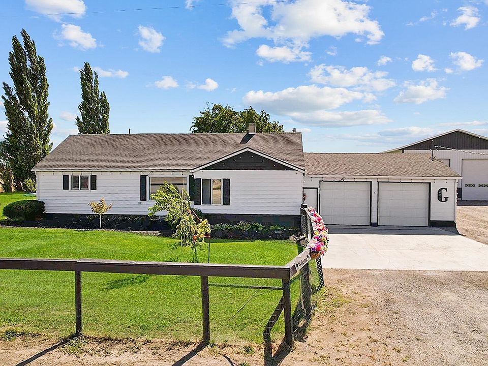 Welcome to this charming 5-bedroom, 2-bathroom country home that perfectly combines peaceful rural living with modern updates and functionality. From the moment you step inside, you’ll be greeted with spacious rooms, natural light, and thoughtful finishes that make the home both warm and inviting. The generous floor plan features oversized living areas. The beautifully updated kitchen offers abundant storage, plenty of counter space, and a large dining area perfect for gatherings. The primary suite includes a walk-in closet and en-suite full bath, creating a private retreat. Additional bedrooms are roomy and versatile, ensuring comfort for everyone. A finished basement adds even more living space, making it an excellent option for a recreation room, office, or guest area. Step outside to discover a true outdoor retreat. A large deck overlooks the fully fenced yard, perfect for summer barbecues, evening relaxation, or enjoying your morning coffee. Mature landscaping surrounds the home, with fruit trees, raspberries, a huge strawberry patch, and two raised garden beds, creating a productive and beautiful outdoor space. The property also features a sandbox, playhouse, pool, and storage shed—making it a haven for families and outdoor enthusiasts alike. One of the standout features is the new 35x50 heated and insulated shop. Complete with a finished 15x35 loft, entertainment center, and gym flooring, this versatile space is perfect for hobbies, projects, storage, or a home business. Located just outside of town and minutes from the reservoir, this property offers the best of both worlds—peaceful country living with convenient access to town amenities. The picturesque views and serene surroundings make it easy to unwind and connect with nature. This home truly has it all: updated and spacious living areas, a beautifully landscaped and productive yard, and an exceptional shop that adds tremendous value. Don’t miss the opportunity to make this unique property your own!