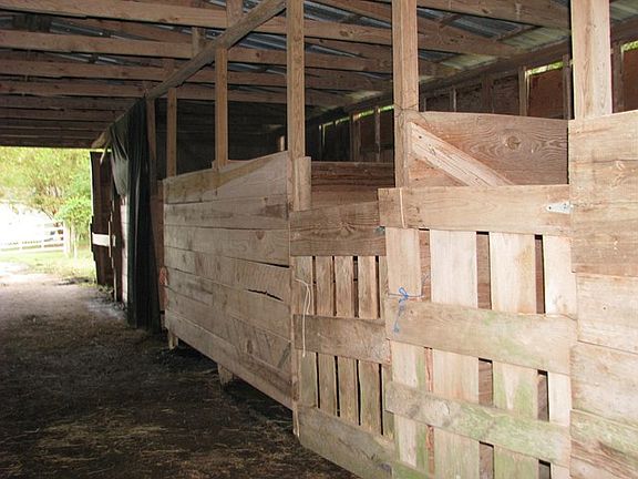 This large acreage parcel (5.21 acres) with very private house plus double detached garage, storage building, and large barn w/stables may be just the property you are looking for. Property has a pond & is perfect for horses. House is a 2005 doublewide with a great floor plan and in good condition. Large living room w/fireplace plus large kitchen with bar and separate dining room and utility room. Master suite w/jetted tub & lots of storage. 2nd & 3rd BD are good size + 2nd full BA. House is set back from the road accessible through deeded right of way & canopy drive. 3 walk-in closets.