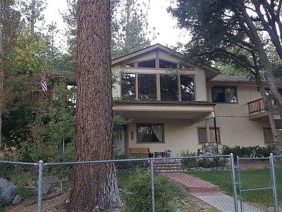 **Beautiful Mountain Home*** This Home Sits Perfectly on a corner lot with a fully fenced yard with natural grass and mature trees. Entry is on the first level which has a bedroom, bath,and a Big Bonus room which is ideal for Guests and much more with a sliding glass door leading to the yard, also access to the laundry room and 3 car garage with workshop.The main living area is upstairs with high beamed ceilings and large windows that give this home a open feeling and has amazing views of the trees and nature. The kitchen also has nice views. The formal dinning room has a/c unit and sliding doors that leads out to private balcony with open concept to the family room which features a custom river rock pony wall with a wood burning stove that heats the Whole house, also a dry bar to mix up some afternoon drinks. This 3 bedroom 3 bath home is truly well built. The Master suite has Bathroom with duel sinks and a walk in closet, and a sliding glass door leading out to your private balcony. The second bedroom is spacious with closet. This Home Also is a extra large lot with RV Parking with Electricity and Dump station fully cemented with newer Septic system and new water heater with a water Softener system. You wont be disappointed with this home.