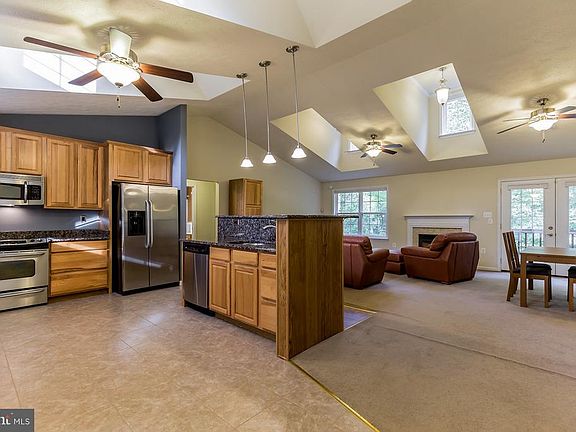 Best Deal in Mechanicsville! Nestled on a 1.62 acre lot, this 3 Bedroom, 2 Bath Rambler features cathedral ceilings and sunny skylights in an open floor plan design. The kitchen is complete with maple cabinets, stainless steel appliances & granite counter tops and is great for gatherings. Split bedroom floor plan with spacious master bedroom ensuite and walk in closet. Windows have upgraded cellular shades to conserve energy * gas fireplace * 8 ceiling fans * spacious 2 car garage w/ 8' door * wide front porch * private setting * East side of property bounded by a small stream known as Coatigan Run * paved driveway * large 14x20 shed conveys (as-is) * Home wired for backup generator * security system * Owned propane tank * Full, partially finished, light filled, basement has been roughed in for a full bath, 2 bedrooms, bar, and large rec room and walk out level to private back yard. **No HOA** Convenient Location: Close to BAGGETT PARK w/ Tennis and Basketball Courts, Baseball Fields and Large Play Ground Area. Close to THREE NOTCH TRAIL w/over 13 miles of Trail for Bicycling, Walking and/or Running. Close to SUMMERSET FARM which hosts Craft Fairs, Concerts, and numerous other events throughout the year. Convenient location for commuting to PAX NAS.