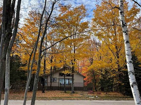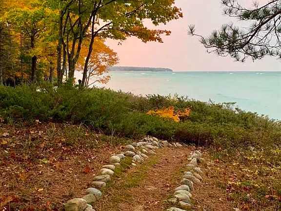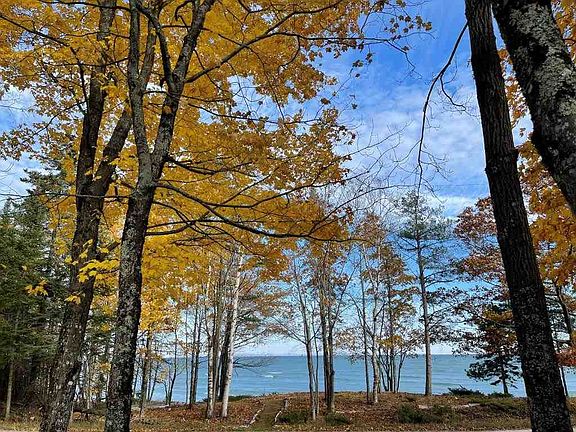 Like-new home that has been kept in excellent condition. This home is on the South end of Cable's Bay with 214 feet of what has almost always been nice sandy beach. It is a two bedroom, one bath home with a full basement. An almost all-glass front provides a "Million Dollar" view of the lake. The Andersen window wall sliders were replaced in 2020. The owners also put new 30-year shingles on the house in 2020. The windows throughout the house are Andersens. Very nice, large deck area on the front (lakeside) of the house. The home looks across East Side Drive but the part of the lot between the road and the water’s edge is very deep with secluded beach use areas. A stairway and decking on the beachside was built in 2018. The lakeside part of the lot has been opened to provide a beautiful view of Lake Michigan across the lake front lot. New screening was put on the side porch in 2021. There is easy-care laminate flooring in the great room with a knotty pine cathedral ceiling. There is an outdoor shower with decking on the back of the house. There is a detached storage shed on the North side of the house. The home has Dimplex multi-zone wireless controlled baseboard heating installed in 2018. Almost all of the appliances are 4-5 years old. For your coziness and enjoyment there is a centrally located Vermont Castings Resolute stove; it heats the entire main floor with just a few logs. To appreciate this home you have to see its remarkable setup and all of its features. The Cable's Bay Public Beach Park and the Lake Geneserath Boat Launch are both just 1 1/4 miles up the road. The Iron Ore Bay Public Beach and the Beaver Head Lighthouse are just a four minute drive south. Take your golf cart to a big sandy beach north or south or use your own beach. The raw land value of this property is over $150,000., so this offering is really a bargain at the asking price of only $435,000.