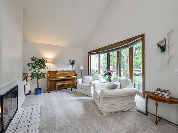 If you love open floorplans and soaring ceilings, this home is for you. Beautiful and affordable soft Contemporary in the heart of Oakhurst and Naperville Indian Prairie School District 204. Two story Foyer, Living Room and Family Room features a two-sided gas log fireplace, all new neutral carpeting, skylights and beamed ceiling adjacent to the Dining/Breakfast Room area. Totally open floorplan is an entertainer's dream...wet bar, currently used as a coffee bar, is plumbed and a quick switch will provide you with a wet bar for entertaining. Kitchen features access to the large deck and lovely landscaped fenced yard. Refinished cabinetry and newer SS appliances, Corian countertops, . Adjacent to the Dining area is a Study/4th Bedroom complete with closet and glass French doors. First floor Laundry/Mud Room with access to the 2 car garage. The Primary Bedroom features a vaulted ceiling, large walk-in closet AND a completely renovated Full Bath with vaulted ceiling, heated flooring, large luxury shower, skylight and dual vanity. Two generous additional Bedrooms and a Full Bath complete the 2nd level. The finished Basement is perfect for extra entertaining space or play area for the family. A large portion of the Basement has been reserved for storage or an exercise area. Home also features a security system and lawn sprinkler. Walk to Oakhurst pool and parks, Waubansie Lake and High School. This is perfect for those wanting an open floorplan. 2024: Roof, skylights, Kitchen appliances, interior painting, deck refurbished. 2025: Total rehab of Primary Bath, Windows replaced (except LR bow window), new carpeting on main level. Please see a complete list of updates in Additional Information. Oakhurst residents LOVE it here...