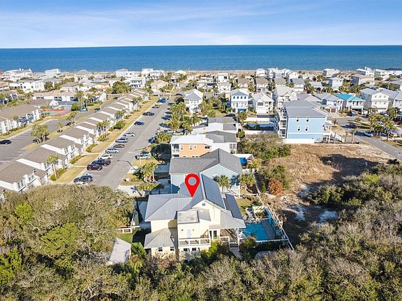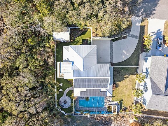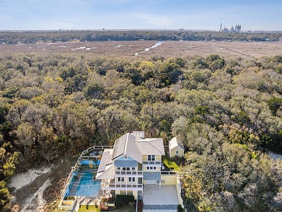 Sun is shining on Amelia Island and the weather is sweet. Situated high up on a DOUBLE LOT within a pristine natural dune system, this house is designed to entertain with its multi-level wraparound porches, exterior lighting, firepit area, saltwater POOL, and covered lanai. The open-concept floor plan includes a chef’s kitchen with an expansive walk-in pantry, quartz countertops, and high-end appliances. Owned SOLAR PANELS keep energy costs low, and a whole-house GENERATOR with its own 500-gallon underground tank makes unexpected power outages a breeze. The superb design features en-suite bedrooms throughout and an elevator shaft in place. ZONED R-3 gives you the ability to join the lucrative market of SHORT-TERM RENTALS on this sought-after resort island. With Ft. Clinch as your backyard and away from street noise, this quiet oasis is a nature lover’s dream. The separate detached building is perfect for a gym, yoga studio, or perhaps a private office away from it all. Architectural plans to add 2 additional garage space and expand the first floor porch are available. Quiet, private, and just minutes from the beach—this is Amelia Island living at its best.